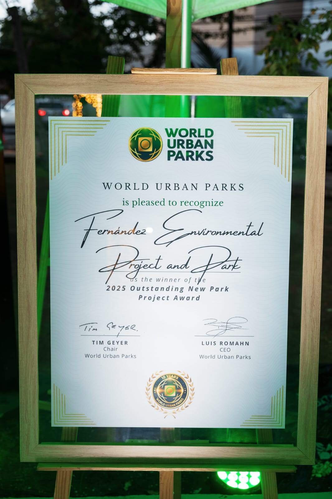 El galardón recibido por la Alcaldía del Distrito Nacional reconoce como el Nuevo Proyecto Sobresaliente de Parque para la Región de Latinoamérica al Proyecto Ambiental y Parque Fernández por la sostenibilidad, excelencia y el impacto que produjo en la referida demarcación.