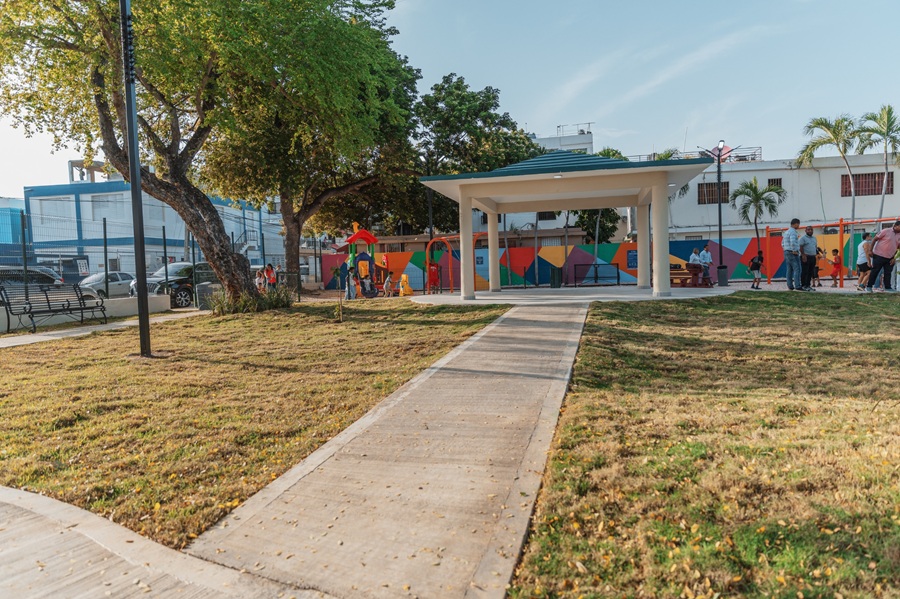 El parque, ubicado entre las calles Hermanas Mirabal, Central y Ercilio Montero, fue remozado a través del Presupuesto Participativo Municipal, con apoyo de recursos adicionales de la alcaldía, y responde al modelo de espacios públicos inclusivos, seguros y modernos que impulsa la administración de Mejía.