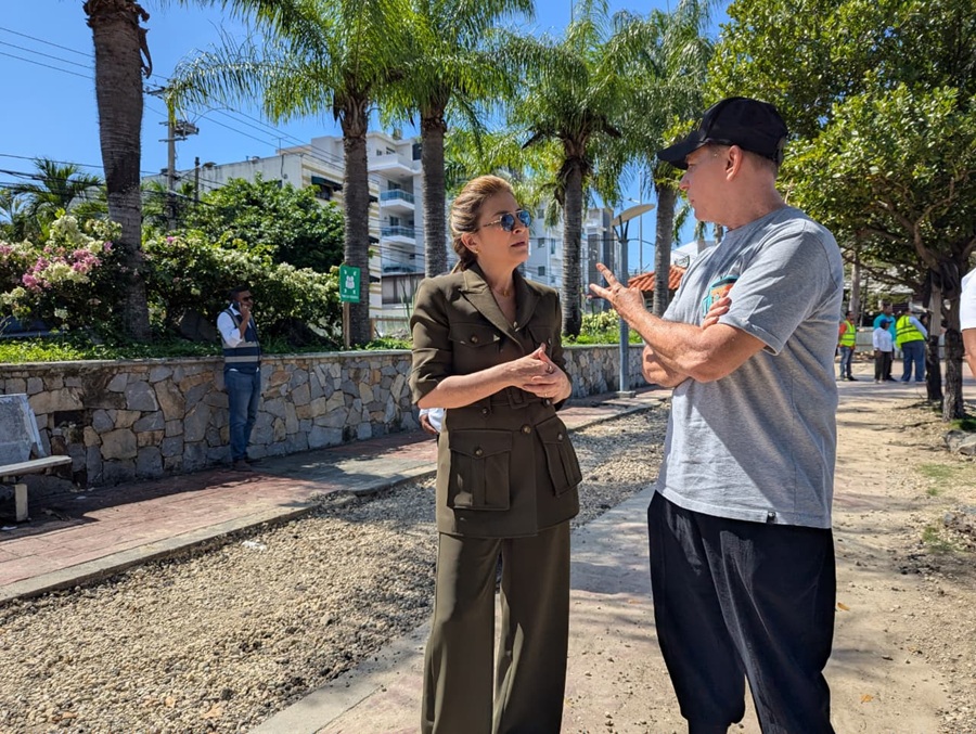 Santo Domingo, DN- Carolina Mejía realizó un recorrido en el parque Núñez de Cáceres para supervisar los trabajos de remozamiento integral que se están efectuando junto al Banco Popular Dominicano.