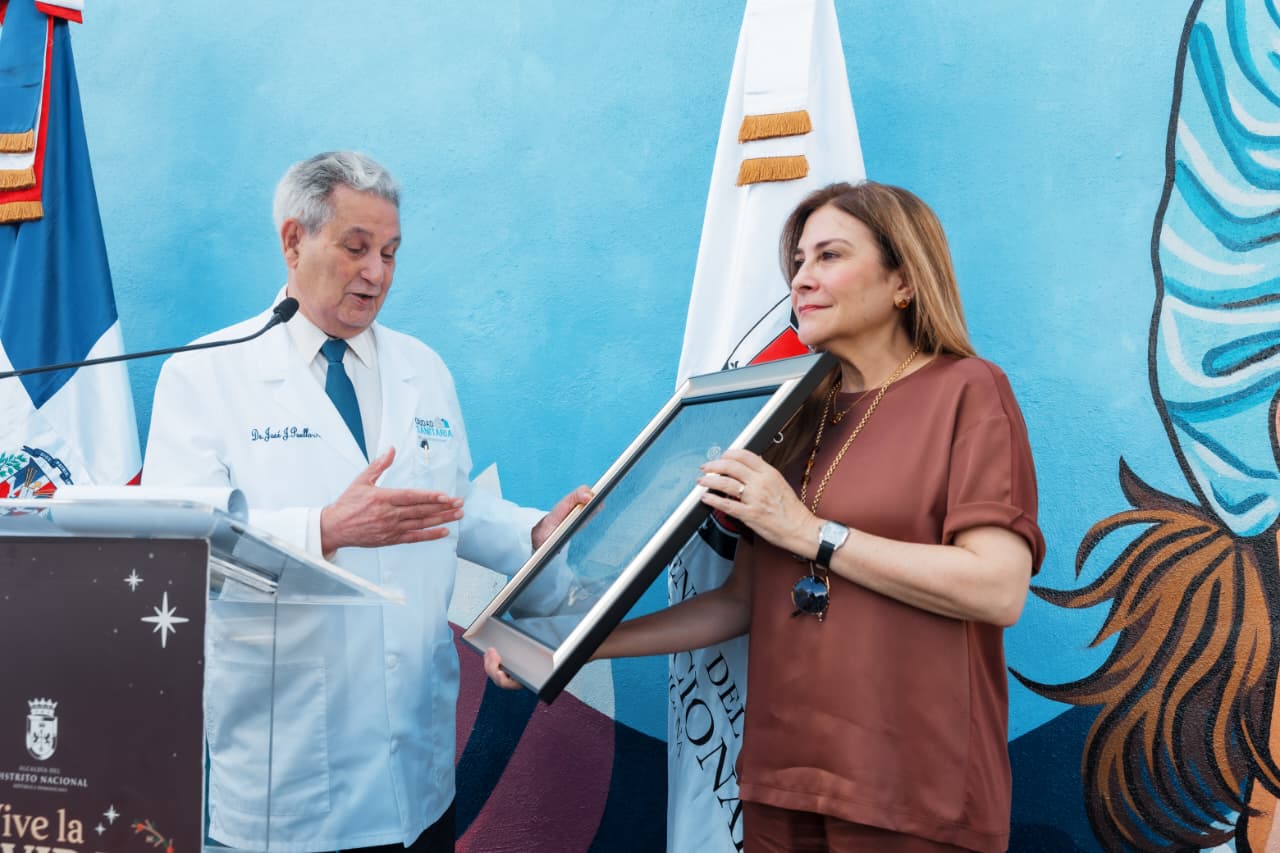 Santo Domingo, DN – El presidente de la Ciudad Sanitaria Dr. Luis Eduardo Aybar, doctor José Joaquín Puello, entregó un reconocimiento a Carolina Mejía en el marco de la inauguración del parque lineal Ciudad Sanitaria.