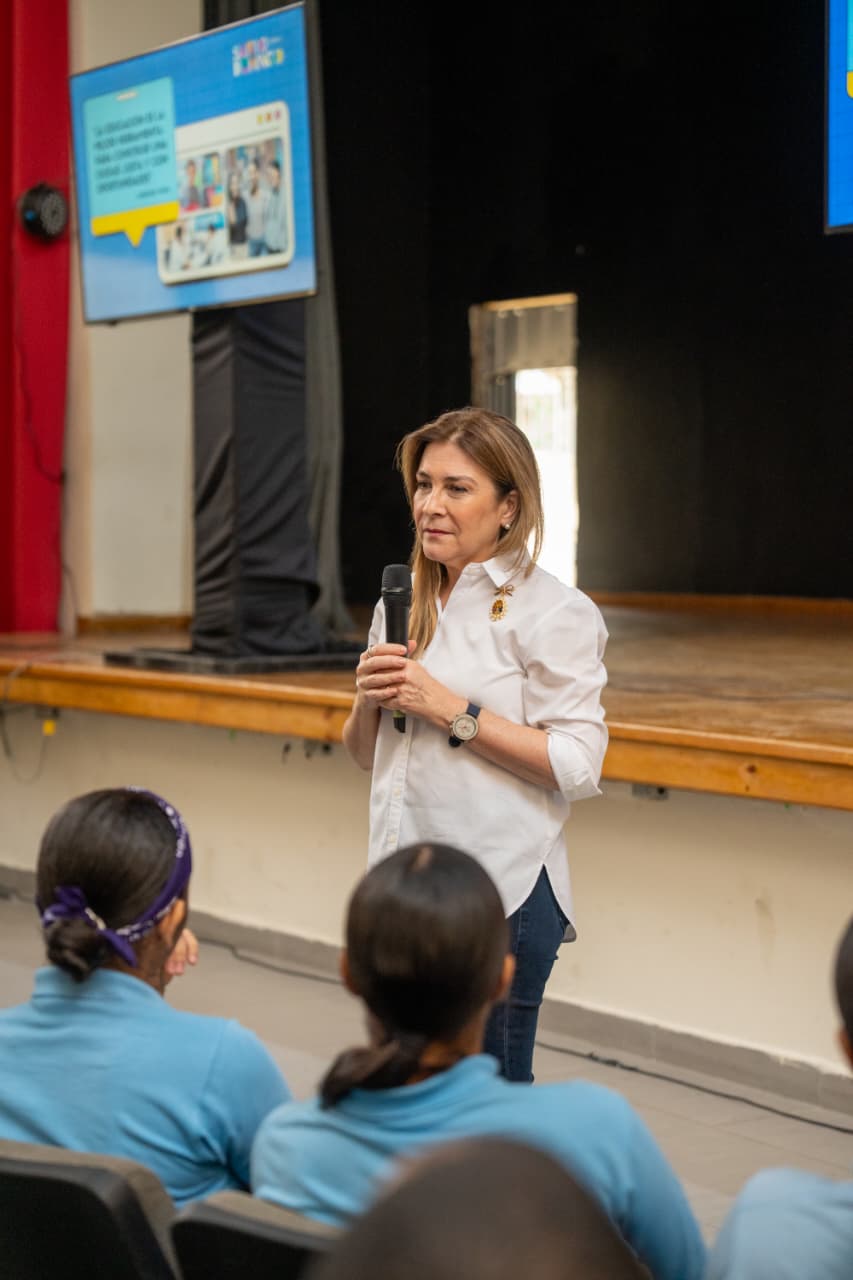 > Mejía también exhorta a los estudiantes a proteger el medio ambiente Santo Domingo, DN- Carolina Mejía, al sostener una conversación con los estudiantes del Instituto de Señoritas Salomé Ureña,