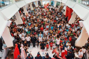 Santo Domingo, D.N.- Bailes, juegos, risas y mucha diversión fue lo que vivieron los niños y jóvenes que se dieron cita en el atrio central de Acrópolis, donde el Cuerpo